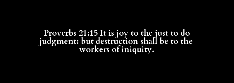 Proverbs 21:15 It is joy to the just to do judgment: but destruction shall be to the workers of iniquity.