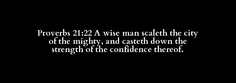 Proverbs 21:22 A wise man scaleth the city of the mighty, and casteth down the strength of the confidence thereof.