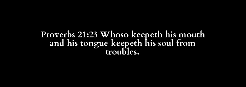 Proverbs 21:23 Whoso keepeth his mouth and his tongue keepeth his soul from troubles.
