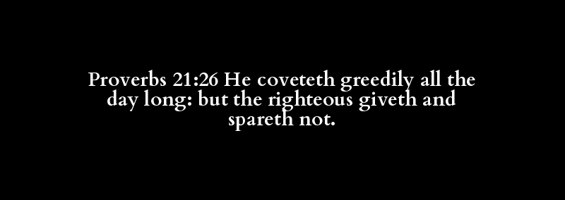Proverbs 21:26 He coveteth greedily all the day long: but the righteous giveth and spareth not.