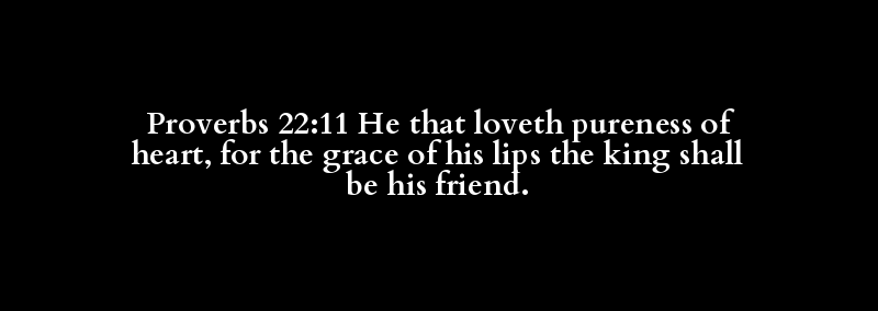 Proverbs 22:11 He that loveth pureness of heart, for the grace of his lips the king shall be his friend.