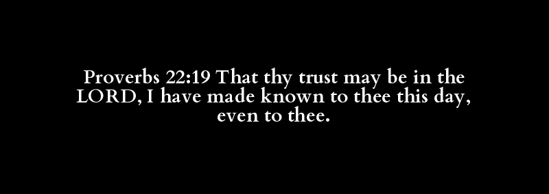 Proverbs 22:19 That thy trust may be in the LORD, I have made known to thee this day, even to thee.