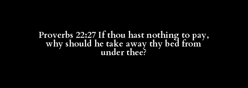 Proverbs 22:27 If thou hast nothing to pay, why should he take away thy bed from under thee?