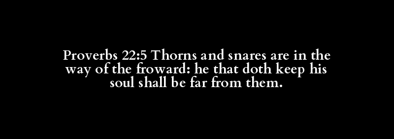 Proverbs 22:5 Thorns and snares are in the way of the froward: he that doth keep his soul shall be far from them.