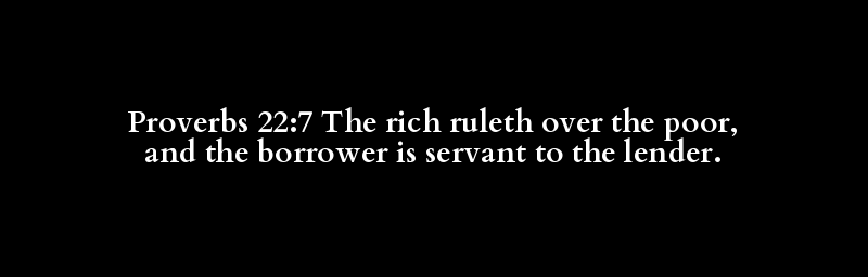 Proverbs 22:7 The rich ruleth over the poor, and the borrower is servant to the lender.