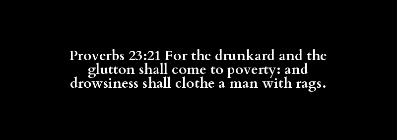 Proverbs 23:21 For the drunkard and the glutton shall come to poverty: and drowsiness shall clothe a man with rags.