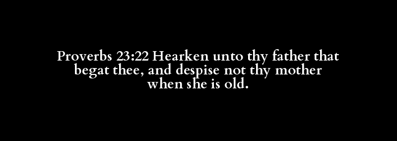 Proverbs 23:22 Hearken unto thy father that begat thee, and despise not thy mother when she is old.