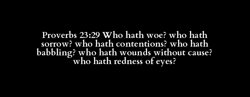 Proverbs 23:29 Who hath woe? who hath sorrow? who hath contentions? who hath babbling? who hath wounds without cause? who hath redness of eyes?