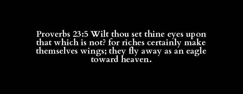 Proverbs 23:5 Wilt thou set thine eyes upon that which is not? for riches certainly make themselves wings; they fly away as an eagle toward heaven.