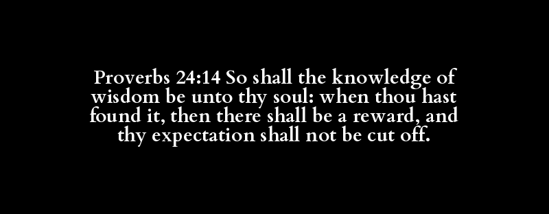 Proverbs 24:14 So shall the knowledge of wisdom be unto thy soul: when thou hast found it, then there shall be a reward, and thy expectation shall not be cut off.