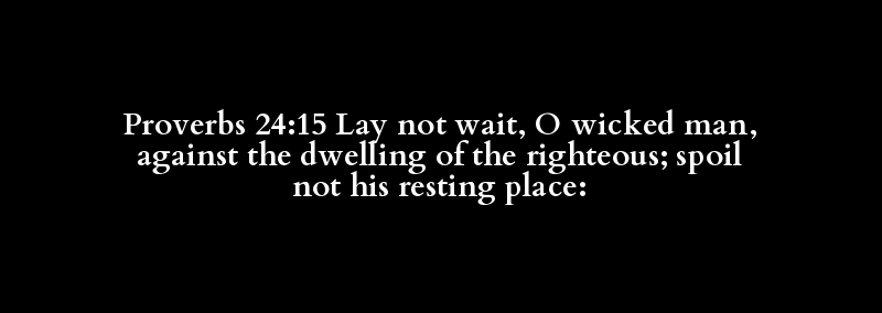 Proverbs 24:15 Lay not wait, O wicked man, against the dwelling of the righteous; spoil not his resting place: