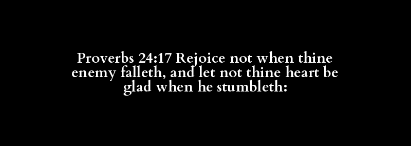Proverbs 24:17 Rejoice not when thine enemy falleth, and let not thine heart be glad when he stumbleth: