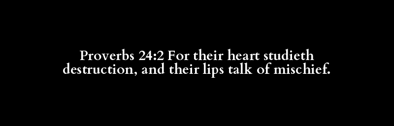 Proverbs 24:2 For their heart studieth destruction, and their lips talk of mischief.