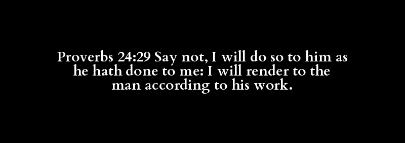 Proverbs 24:29 Say not, I will do so to him as he hath done to me: I will render to the man according to his work.