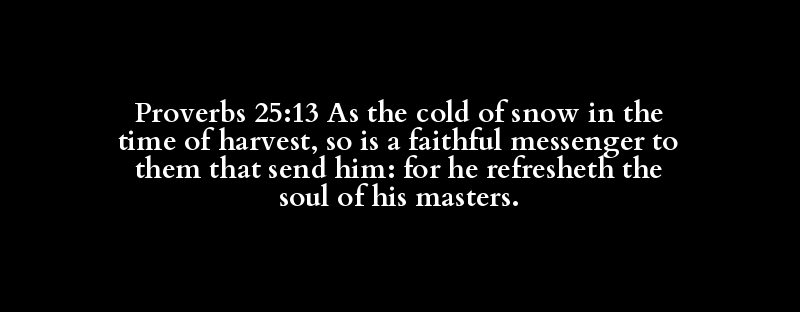 Proverbs 25:13 As the cold of snow in the time of harvest, so is a faithful messenger to them that send him: for he refresheth the soul of his masters.