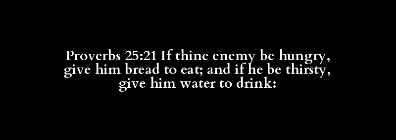 Proverbs 25:21 If thine enemy be hungry, give him bread to eat; and if he be thirsty, give him water to drink: