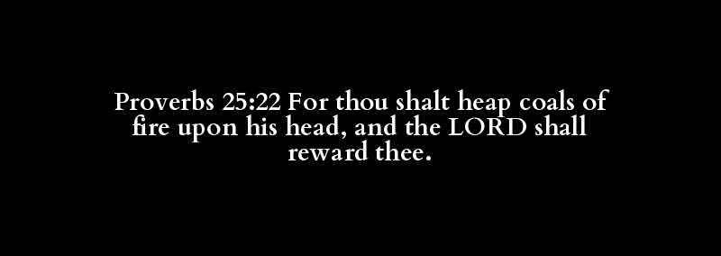 Proverbs 25:22 For thou shalt heap coals of fire upon his head, and the LORD shall reward thee.