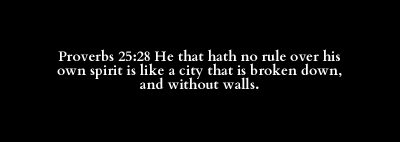 Proverbs 25:28 He that hath no rule over his own spirit is like a city that is broken down, and without walls.