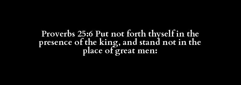 Proverbs 25:6 Put not forth thyself in the presence of the king, and stand not in the place of great men: