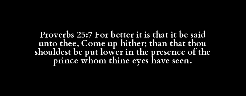 Proverbs 25:7 For better it is that it be said unto thee, Come up hither; than that thou shouldest be put lower in the presence of the prince whom thine eyes have seen.