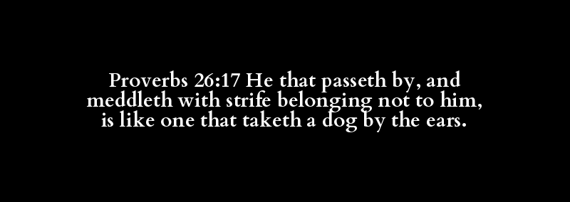 Proverbs 26:17 He that passeth by, and meddleth with strife belonging not to him, is like one that taketh a dog by the ears.