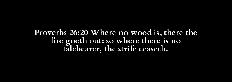 Proverbs 26:20 Where no wood is, there the fire goeth out: so where there is no talebearer, the strife ceaseth.