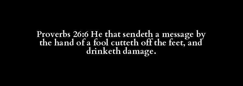 Proverbs 26:6 He that sendeth a message by the hand of a fool cutteth off the feet, and drinketh damage.