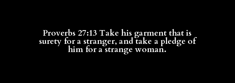 Proverbs 27:13 Take his garment that is surety for a stranger, and take a pledge of him for a strange woman.