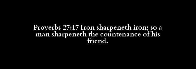 Proverbs 27:17 Iron sharpeneth iron; so a man sharpeneth the countenance of his friend.