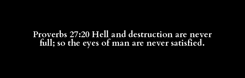 Proverbs 27:20 Hell and destruction are never full; so the eyes of man are never satisfied.