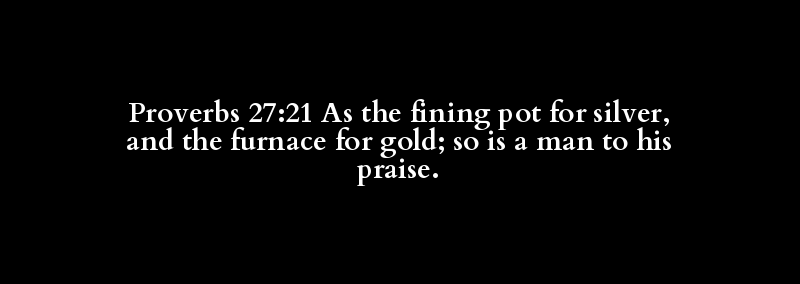 Proverbs 27:21 As the fining pot for silver, and the furnace for gold; so is a man to his praise.