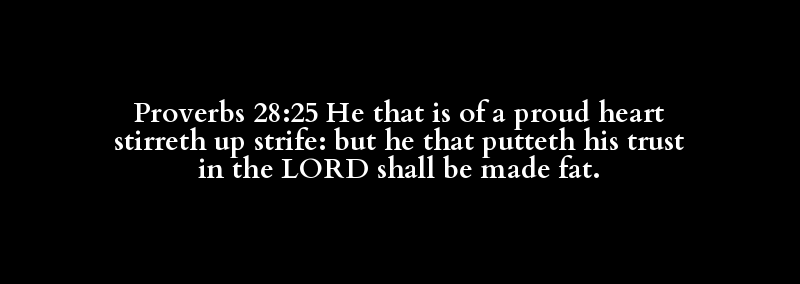 Proverbs 28:25 He that is of a proud heart stirreth up strife: but he that putteth his trust in the LORD shall be made fat.