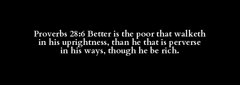 Proverbs 28:6 Better is the poor that walketh in his uprightness, than he that is perverse in his ways, though he be rich.