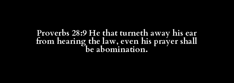 Proverbs 28:9 He that turneth away his ear from hearing the law, even his prayer shall be abomination.