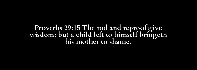 Proverbs 29:15 The rod and reproof give wisdom: but a child left to himself bringeth his mother to shame.