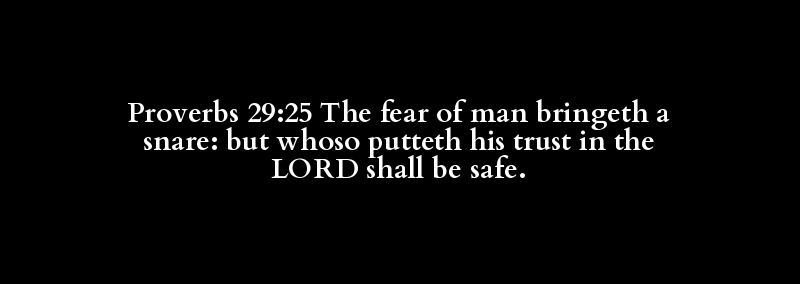 Proverbs 29:25 The fear of man bringeth a snare: but whoso putteth his trust in the LORD shall be safe.