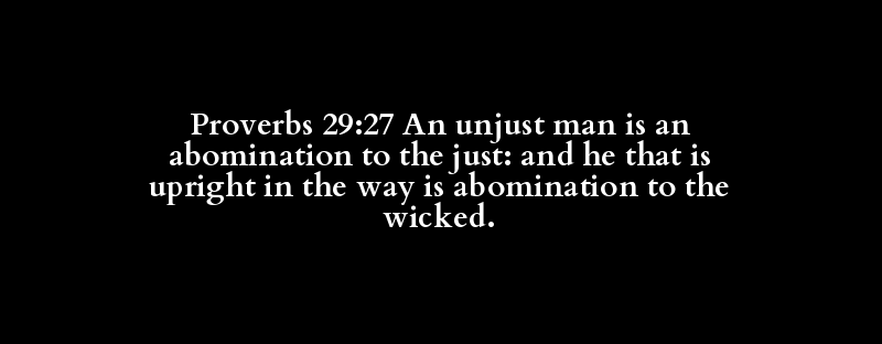 Proverbs 29:27 An unjust man is an abomination to the just: and he that is upright in the way is abomination to the wicked.