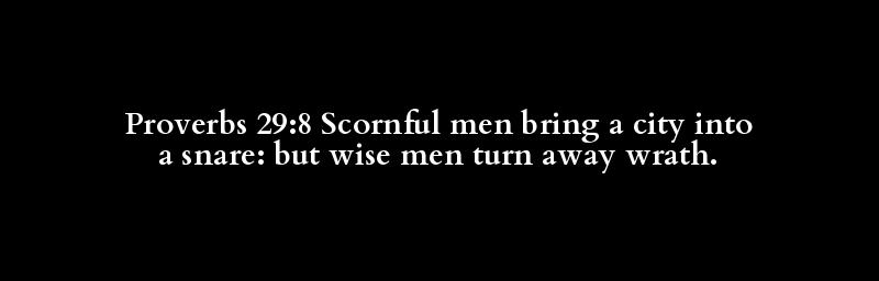 Proverbs 29:8 Scornful men bring a city into a snare: but wise men turn away wrath.