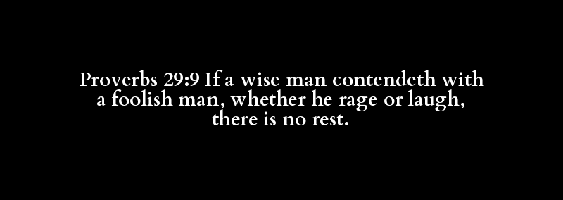 Proverbs 29:9 If a wise man contendeth with a foolish man, whether he rage or laugh, there is no rest.