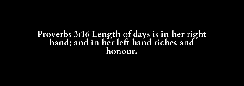 Proverbs 3:16 Length of days is in her right hand; and in her left hand riches and honour.