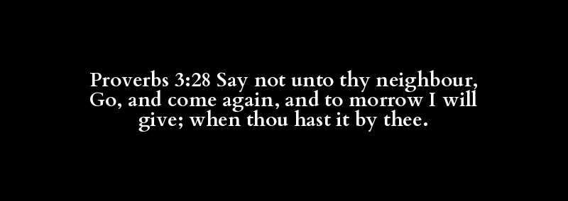 Proverbs 3:28 Say not unto thy neighbour, Go, and come again, and to morrow I will give; when thou hast it by thee.