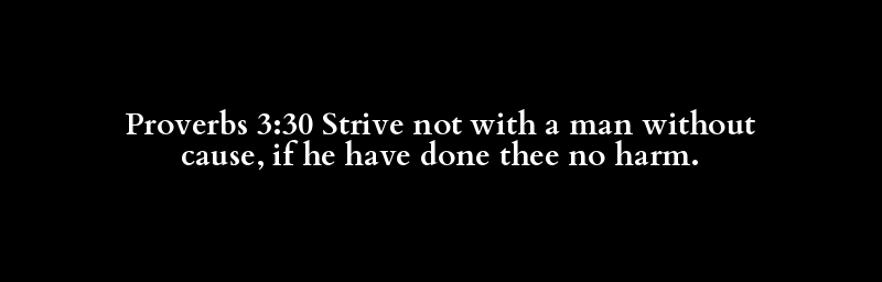 Proverbs 3:30 Strive not with a man without cause, if he have done thee no harm.