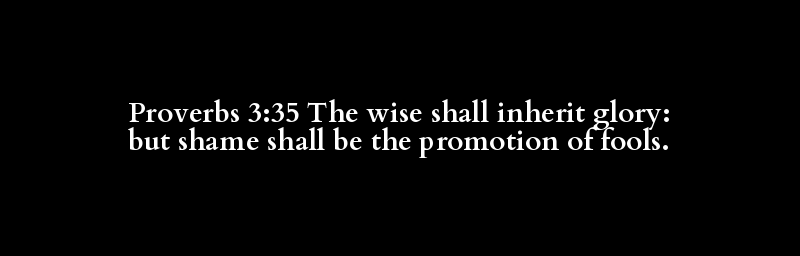 Proverbs 3:35 The wise shall inherit glory: but shame shall be the promotion of fools.