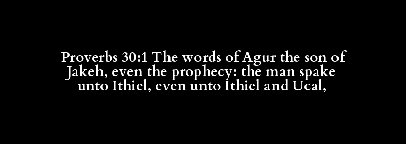 Proverbs 30:1 The words of Agur the son of Jakeh, even the prophecy: the man spake unto Ithiel, even unto Ithiel and Ucal,