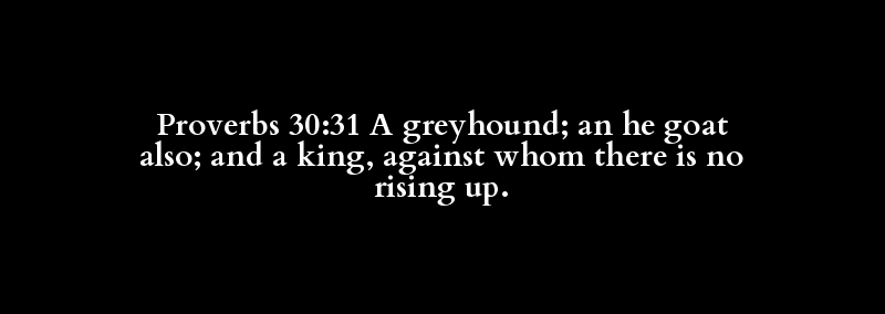 Proverbs 30:31 A greyhound; an he goat also; and a king, against whom there is no rising up.