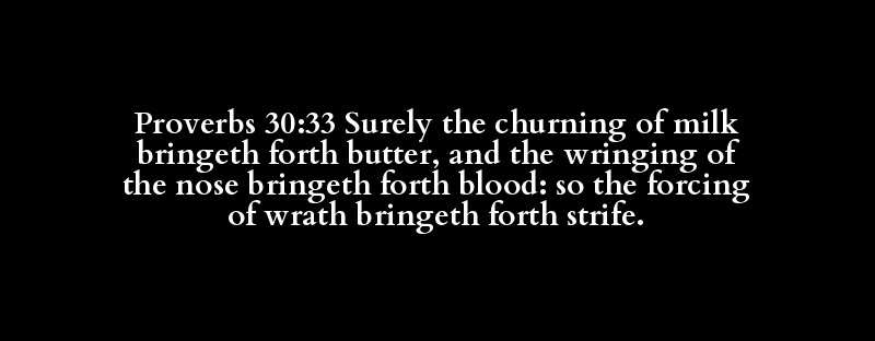 Proverbs 30:33 Surely the churning of milk bringeth forth butter, and the wringing of the nose bringeth forth blood: so the forcing of wrath bringeth forth strife.