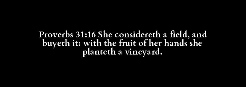 Proverbs 31:16 She considereth a field, and buyeth it: with the fruit of her hands she planteth a vineyard.