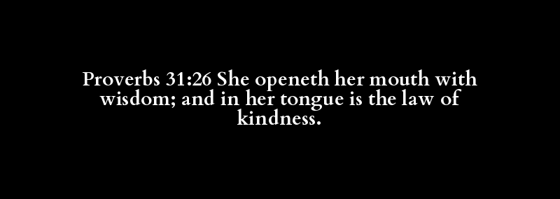 Proverbs 31:26 She openeth her mouth with wisdom; and in her tongue is the law of kindness.