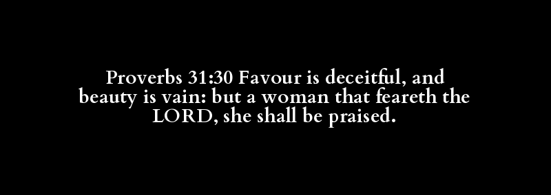 Proverbs 31:30 Favour is deceitful, and beauty is vain: but a woman that feareth the LORD, she shall be praised.