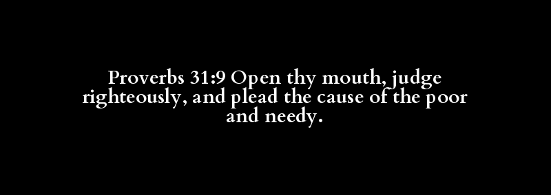Proverbs 31:9 Open thy mouth, judge righteously, and plead the cause of the poor and needy.